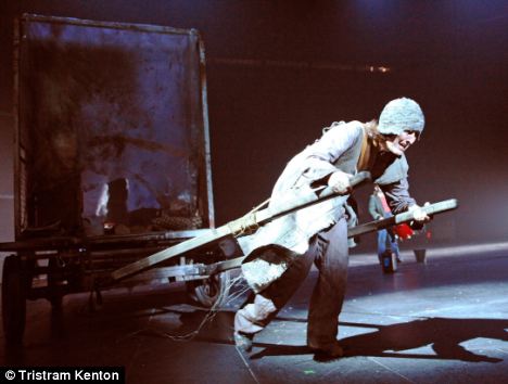 Whether it is in keeping with Brecht's view that his great play should turn into a gigantic rock circus is a valid question, answered perhaps in the programme where Brecht himself directs his Berlin Ensemble prior to the English tour in 1956 to offer 'pure pantomime'. His other pertinent quote, 'writers can't write as fast as governments can whip up wars' gives us another way to look at this mercantile view of wars (or as Amanda put it, Courage is the Military-Industrial complex)