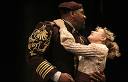 So to Henry’s Othello. He is perfectly cast. He is a big, big man, a believable General, fighter and leader. Othello is no intellectual, but an honest soldier devoted to the cause of Venice. He is warm and kind, decisive and chivalrous and above all honourable. But as the illness of jealousy takes hold he loses all bodily control. Interviewing Emeiia he strides round her in a manic circle unable to stop, and when it all come too much he falls on the floor in an epileptic fit. At times Henry is still just speaking lines, but as often he becomes a part of the text. At all times he is believable and sometimes wonderfully so. More light and shade, perhaps more subtlety, but in this upfront and direct production he is an utterly splendid Othello.
