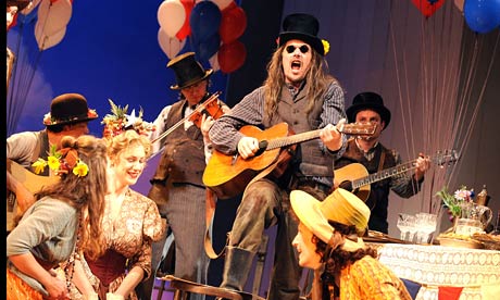 Also of note are Sinead Cussak's feisty and unbowed noble woman Paulina and Richard Easton's shepherd, who looks after the abandoned baby, but in truth the cast are all startlingly good. The surreality of the production is appropriate to the script. Apparently Ben Jonson was incensed at Shakespeare giving Bohemia a coast for years afterwards. A wonderful set for the Sicilian palace, the all candles set of the tragic first half superbly contrasts with the joyous second half party. Excellent music too - not all hillbilly. Hard to criticise unless you like your Shakespeare traditional and static.