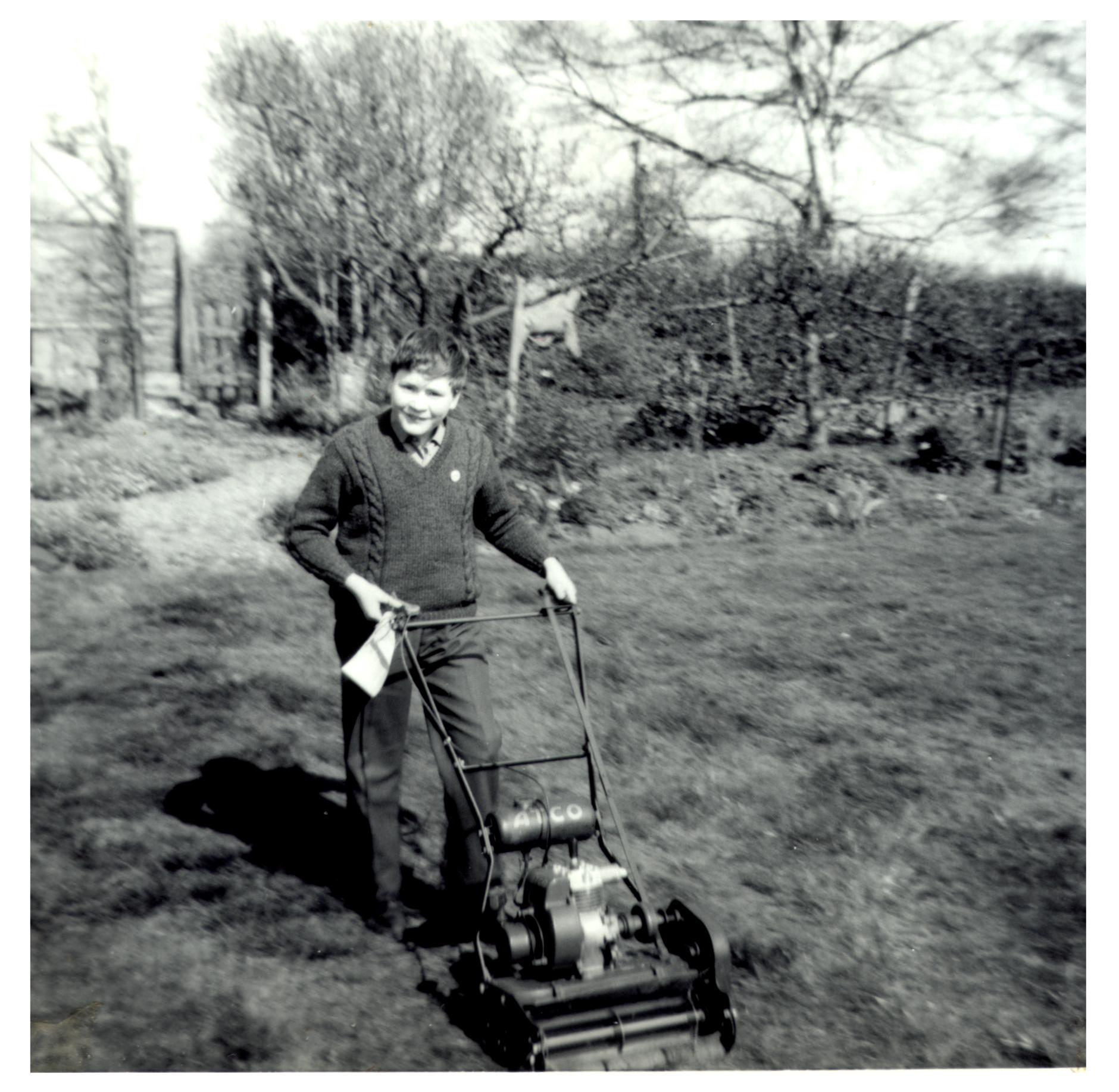 This is me mowing the lawn in Shropshire, aged about 13 I suppose.